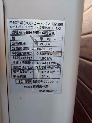 宇部市駅前 長府製作所自然冷媒CO2ヒートポンプ給湯機 ヒートポンプユニットEHPE-459K→コロナ自然冷媒CO2家庭用ヒートポンプ給湯機 ヒートポンプユニットCHP-DZ451K エコキュート交換工事
