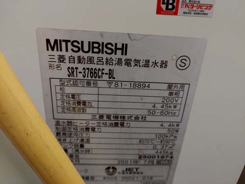 下関市中央 三菱電機自動風呂給湯電気温水器SRT-3766CF-BL→コロナ給湯器 給湯器交換工事